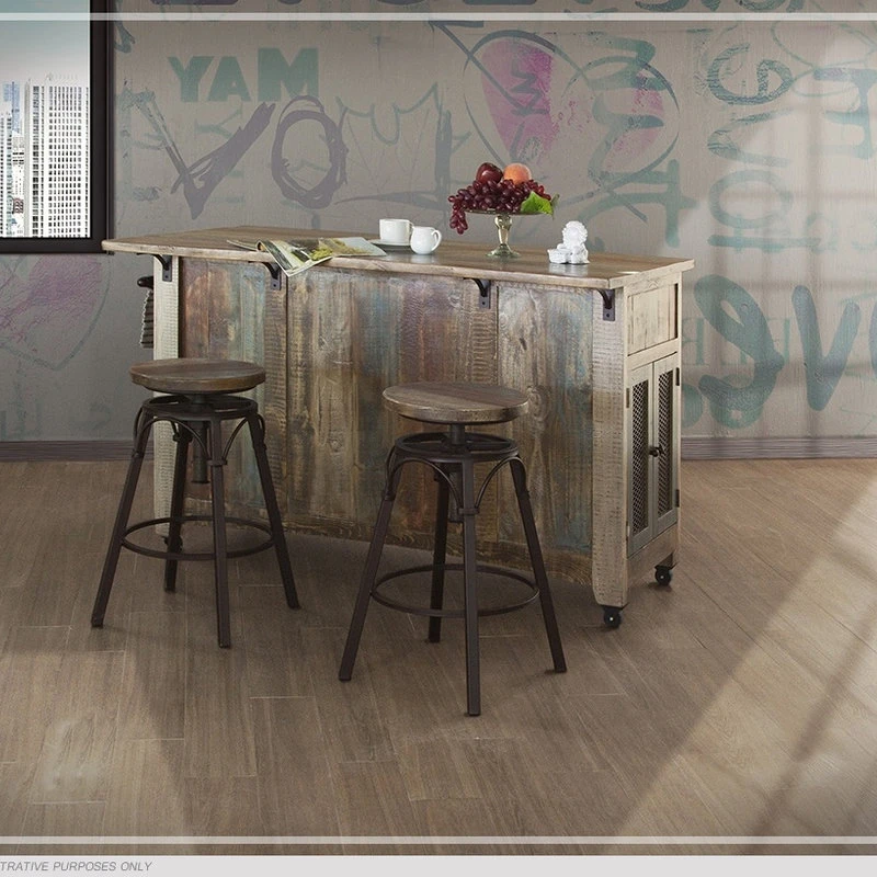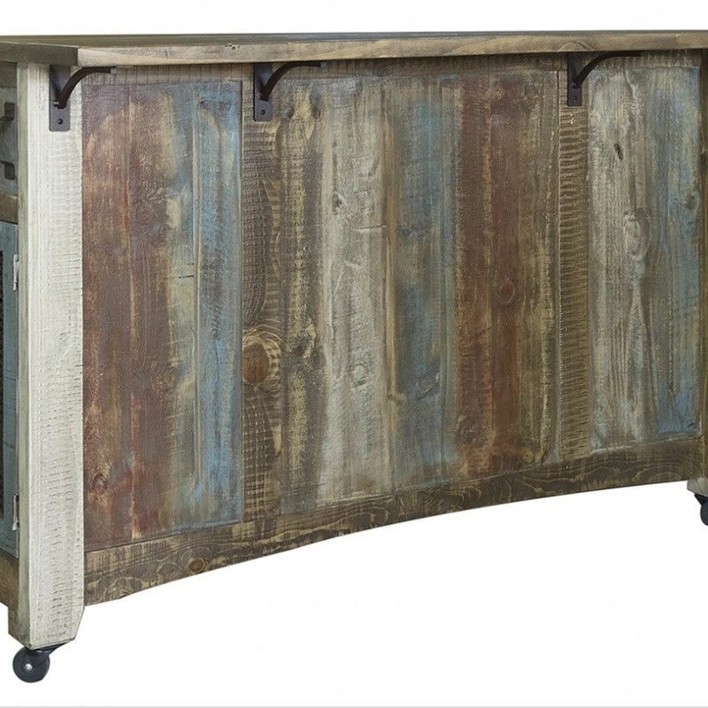 Bayshore Rustic Style Solid Wood Kitchen Island from Crafters and Weavers in Distressed Multicolored Finish