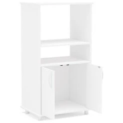 Every time you acquire new tools or appliances for your kitchen, the last thing you think of is the space where you will put your fancy new tool. When you arrive to your kitchen you find there is no space because the microwave is there, the toaster Is on that place or your utensil space is full. The solution to the problem is the Boahaus Montpellier kitchen pantry. The space conscious design makes it perfect fit on almost any kitchen. On top and two open compartments you can place the microwave, small oven, toaster or blender. The two doors cabinet space brings hidden storage for cookware, canned goods and many more. Crafted of manufactured wood with melamine veneers. Assembly is required.