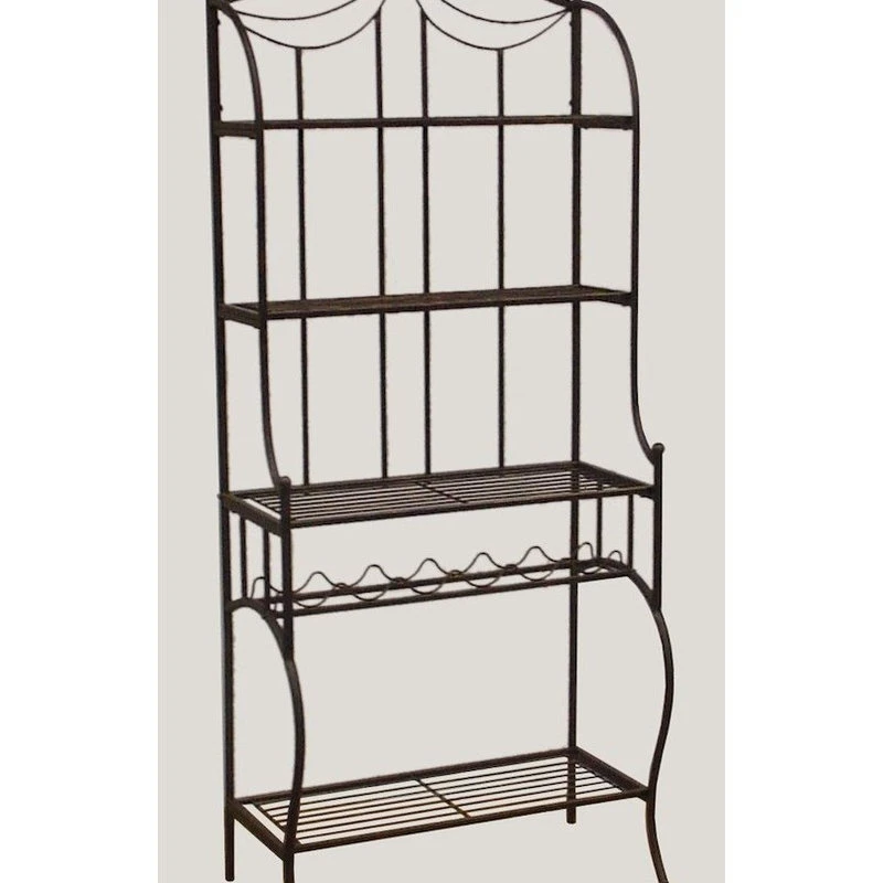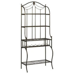 Resplendent in a rich black gold finish and draped in a metal rope motif, our Camelot dining group is a collection fit for royalty at a commoner’s price. The group also includes a lovely metal baker’s rack with coordinating draped metal rope.