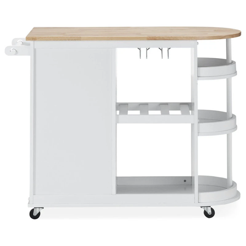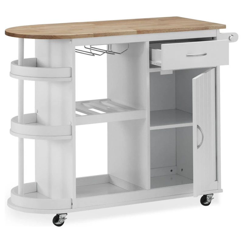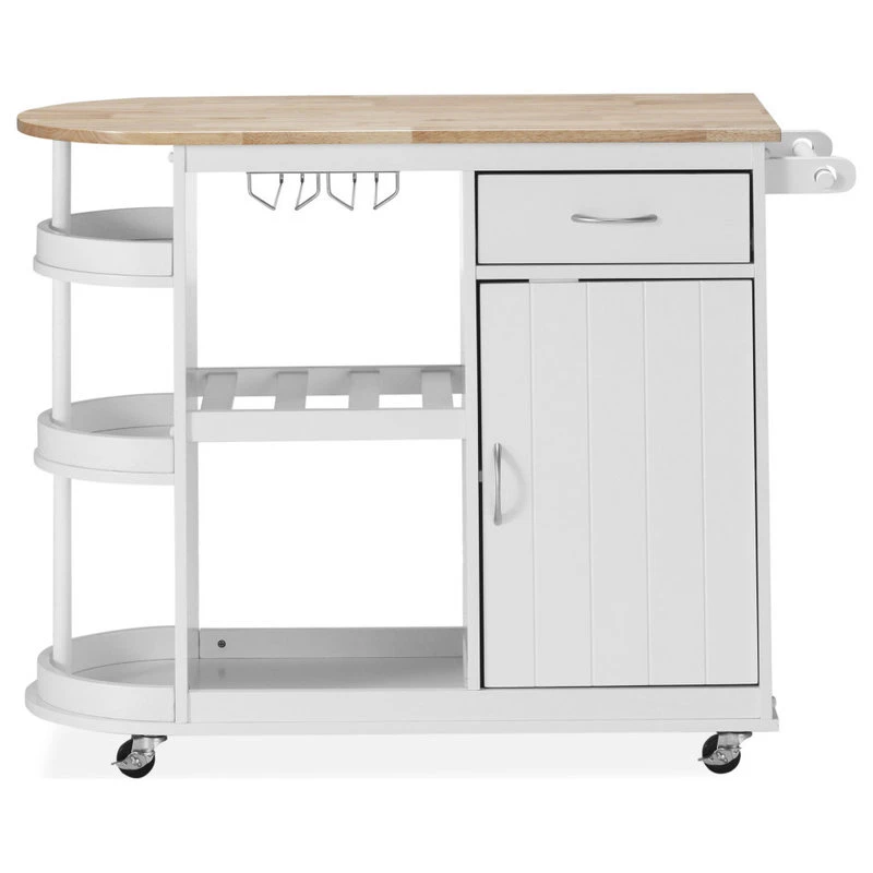 Add extra storage and a touch of elegance to your home with a kitchen island that has all that you need and more. From handy wine glass racks to an easy-access towel holder, our kitchen cart offers ample organizational space to upgrade your living standard with a breeze. This piece features one drawer, shelving, and cabinet space to give you plenty of options to effortlessly and efficiently store your kitchen accessories. Crafted with sturdy wood and rolling casters, our kitchen cart brings a fresh yet timeless look for all to enjoy.