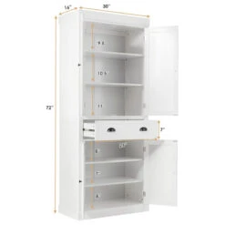 - Can be used as a linen cabinet, food pantry, or home organizer