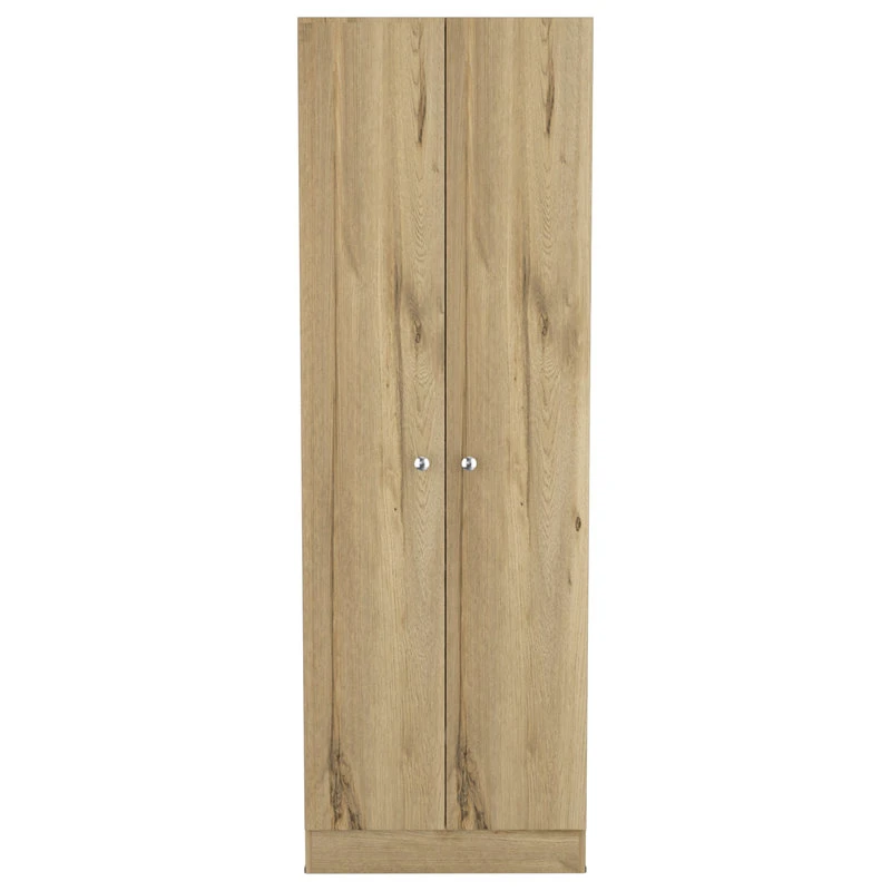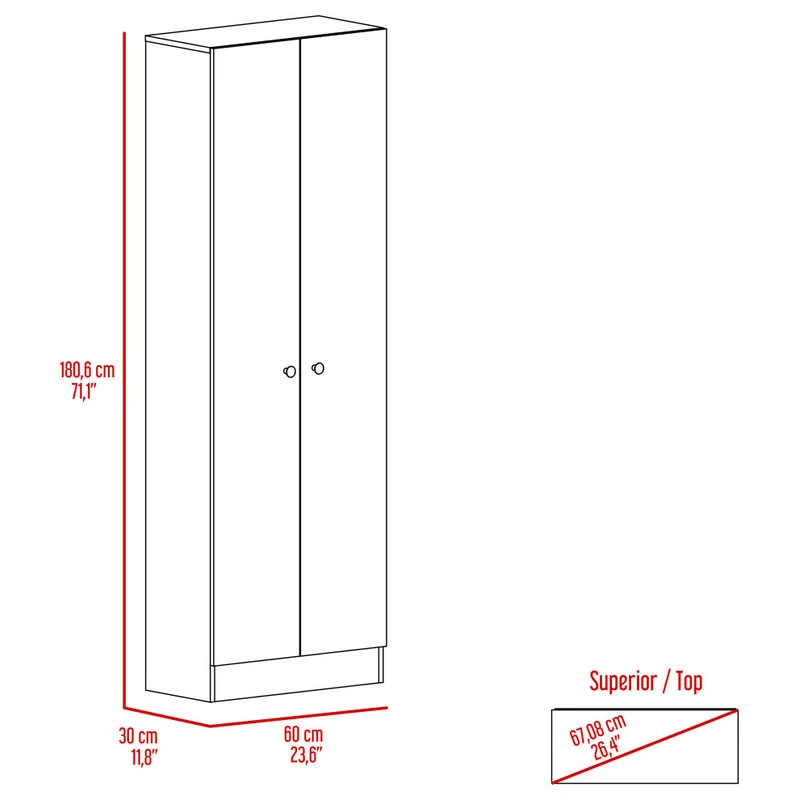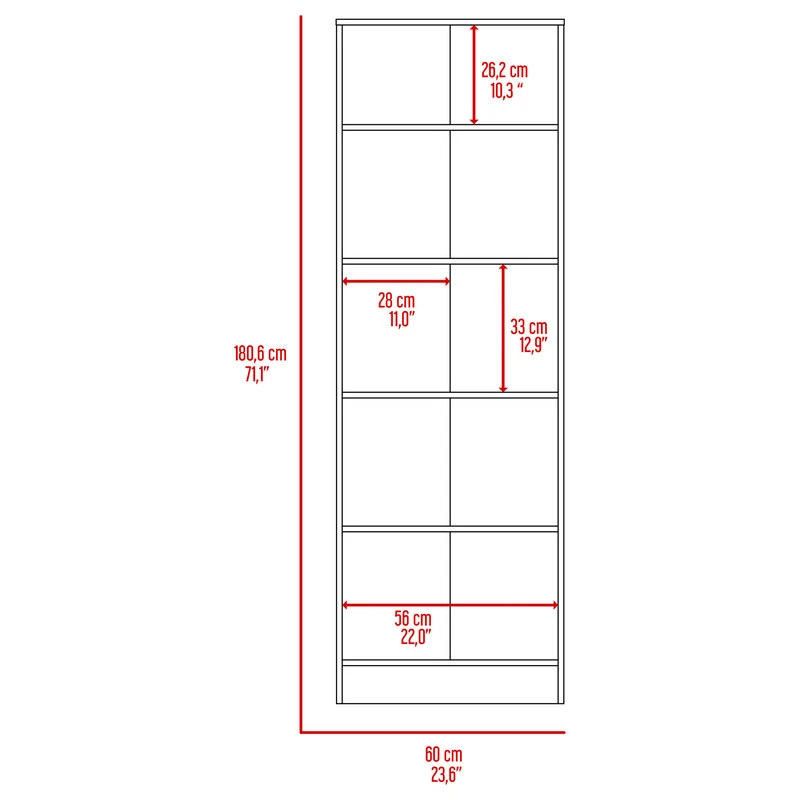Designed with resistant light oak-black manufactured wood and perfect size (23,6”Wx11,8”Dx70,8”H)With five shelves that sit neatly behind two sleek doors. All metal doorknobs and hinges provide an all-around better quality product. Functionality and style work in perfect harmony.