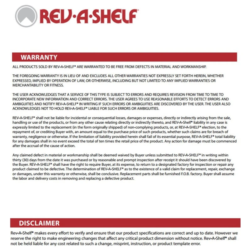 - Designed to work with any of Rev-A-Shelf peg board systems