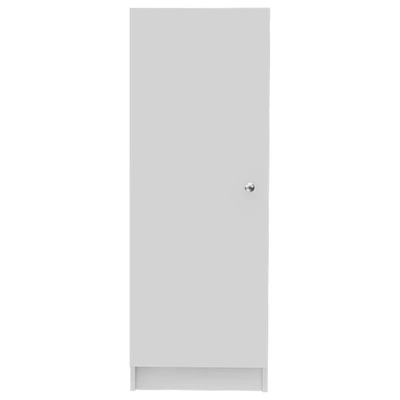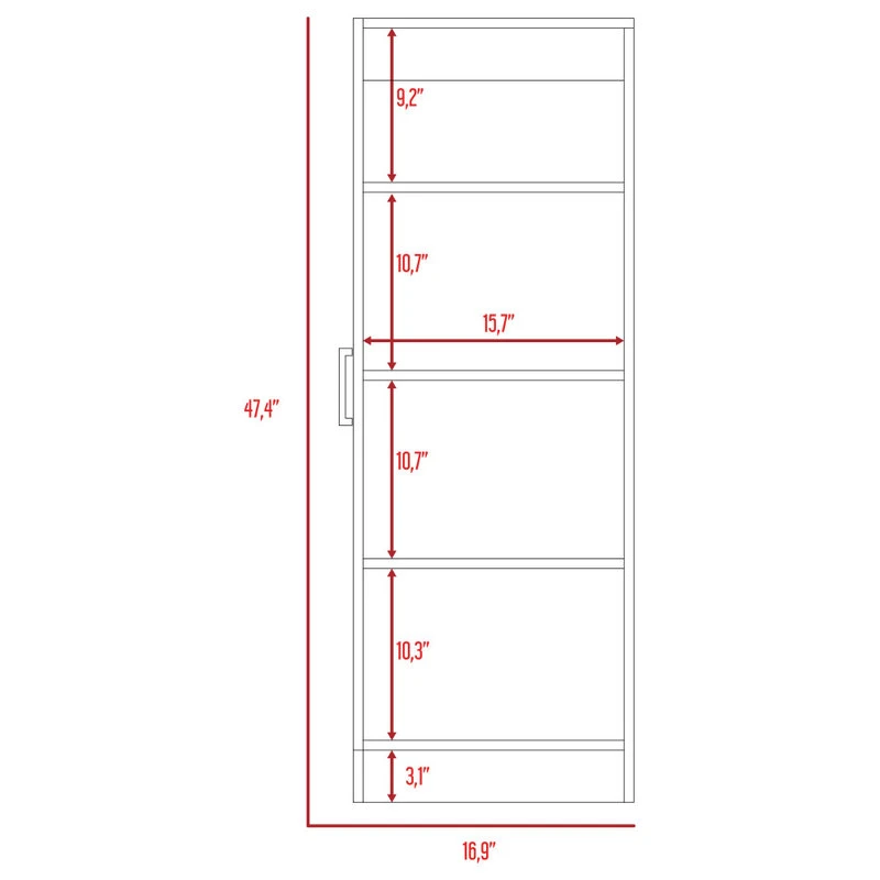 Can´t you find any Pantry cabinet that fits in the room you need it? Excellent addition to your kitchen, the Miami pantry is designed to fit effortlessly into your cooking setting. Its one-door shields off four shelves that provide storage space for spices, bottles, ingredients, and other kitchen items that you may need or use frequently. Its size will allow you to use it in your kitchen, garage, or mudroom without getting in the way or taking too much space. This pantry is made of particle board with a White finish a metal chrome doorknob. Dimensions are 47.4″ H x 16.9″ W x 12.3″ D, each rack from the bottom up are 10.3″ H, 10.7″H, 10.7″ H and 9.2″ H.