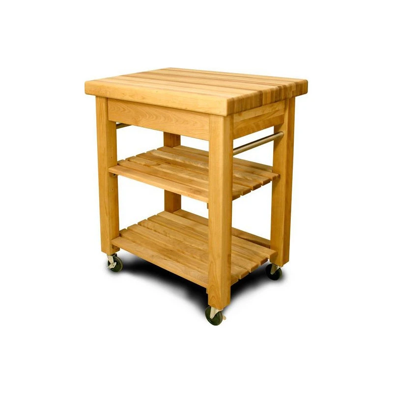 For an large work area, use the Catskill Craftsmen French Country 36 in. Large Kitchen Work Center. This handy work center features 1 large drawer and 2 adjustable shelves to provide plenty of storage space. Yellow birch construction and a 2-1/2 in. thick butcher-block top give the center toughness, while a natural-oiled finish and stainless-steel towel bars make it attractive.