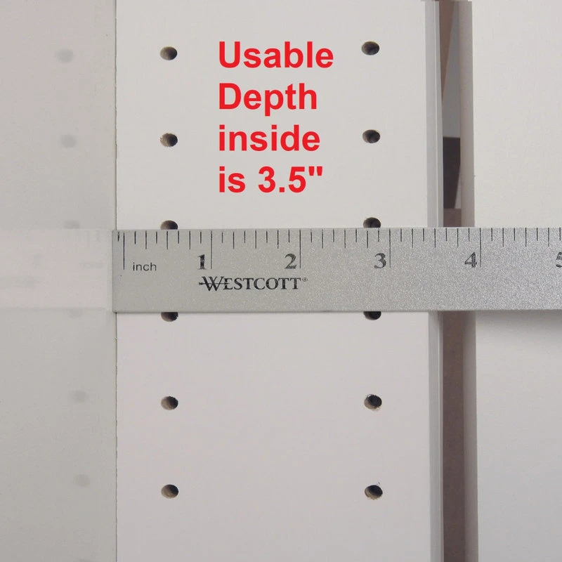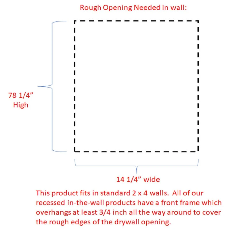 Perfect for any bathroom. Recesses in the wall between the studs, and simply screws to the studs on each side of the opening. Only the doors are outside the wall. Fully adjustable glass shelves inside. Our unique, patented design of shelf supports keeps each shelf in place. Concealed hinges with soft close built in assure the door will never slam shut, but softly close on its own instead. The box is SOLID pine and the Shaker style door is SOLID maple. We’ve painted the inside of the box white, so you don’t have to! The box is 3.5″ deep inside and gives you plenty of usable depth, but fits in standard 2×4 walls. This model has THREE doors that open to reveal two separate cabinet sections. the Cabinet box is 12.5″ wide inside. Doors are reversible to open either Left or Right. Completely assembled! All you need to do is put one screw in each hinge to mount the door. Then insert it into the wall and screw it to the studs with included screws. If you are replacing a current cabinet, measure your wall opening! White plastic trim surround covers the rough edges of your opening up to 1/2″ all around. Doors cover the trim surround when closed so the only thing you see outside the wall is the door itself. Made in Sarasota, FL. The door comes in three variants: