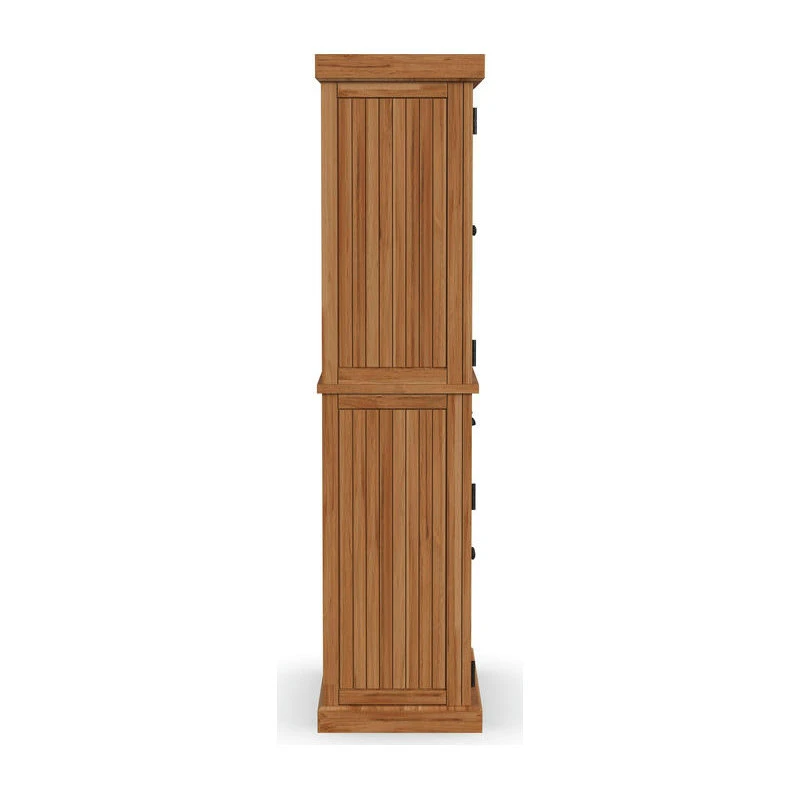 Wainscot flat panels behind solid hardwood frames help define the coastal styling of this Hartford Pantry by homestyles. Crafted from solid hardwood and veneers with engineered wood, and finished in a natural clear maple finish. The pantry features a single center drawer and both upper and lower doors open to two fully adjustable shelves for flexible storage space. Antiqued brushed nickel hardware completes the coastal feel. Finish and measurements may vary slightly. Assembly required. 71.5″Hx30″Wx16″D.