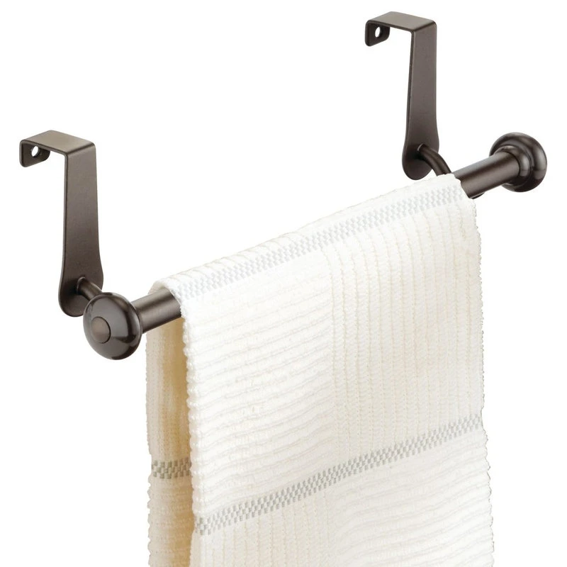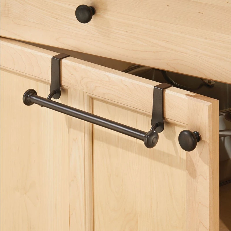 The iDesign York Over-the-Cabinet Towel Bar adds an elegant style to your kitchen. This towel bar is perfect for hanging towels or pot holders. Simply hang the towel bar over your cabinet or door! No nails, screws, or messy adhesives are required for installation. With the bronze wiring, this towel bar is cohesive with any decor. Measuring 10.5″ x 3″ x 3″, the iDesign York Over-the-Cabinet Towel Bar is the accessory you need to simplify your kitchen organization.
