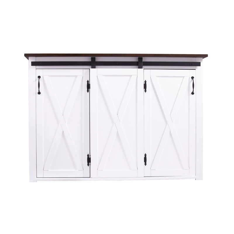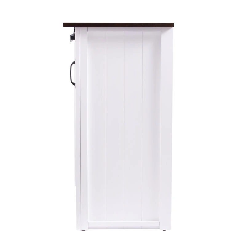 Farmhouse fresh comes to life in this stationary kitchen island. Country details and a functional barn door take a classic storage silhouette to homestead culinary chic. Three cabinets with adjustable shelves tidy up pots and pans, veggie crates, or serveware. Station as a sideboard buffet in the dining room or prep island in the kitchen for stylish storage that works.