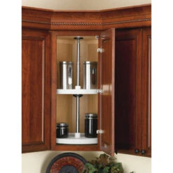 Polymer Full-Circle 2-Shelf Lazy Susans For Corner Wall Cabinets, White, 18″W