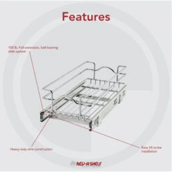 Single Tier Bottom Mount Pull Out Steel Wire Organizer, 8.75″