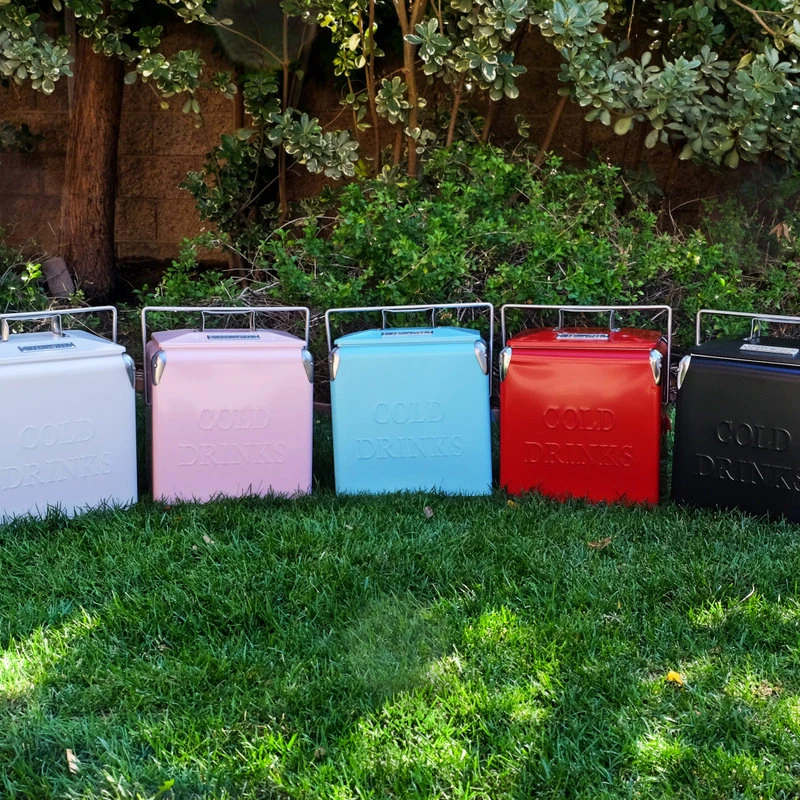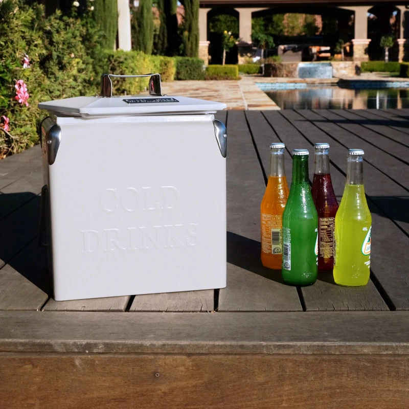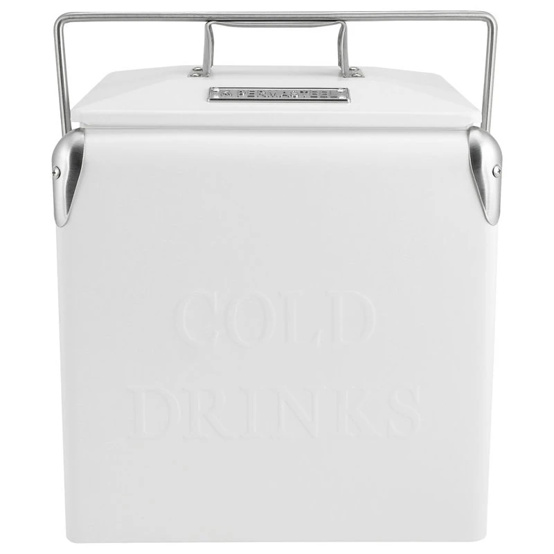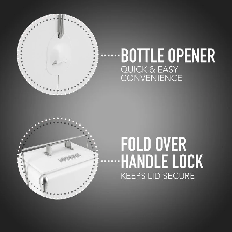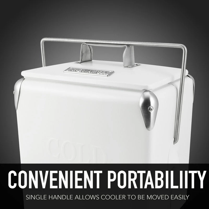This essential White 14-quart portable handheld picnic cooler refreshes food and beverage for those on the go road trips, picnics or simple entertaining guest. The steel constructed cooler is equipped with a bottle opener, so you won’t have to worry about finding one or carrying one. The cooler handle is uniquely designed to make it easy to carry