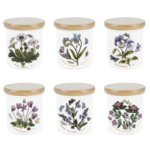 - Presented as a set of six lidded jars with different motifs in a Portmeirion box