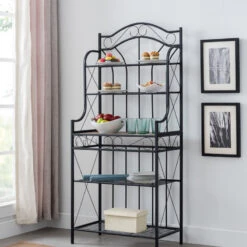 Leroy Black Metal And Walnut Wood 5-Tier Baker’s Rack