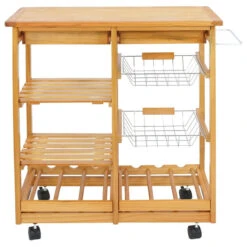 Transitional Kitchen Cart, Cabinet Door & Top With Drop Leaves, Natural Finish