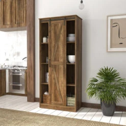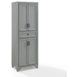 Crosley Tara 4 Door Pantry Set In Distressed Gray (Set Of 2)