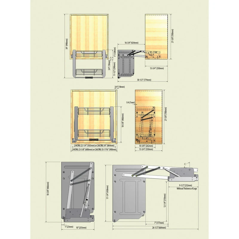 - Brings item down 11-1/2″ and 16-3/4″ out of cabinet