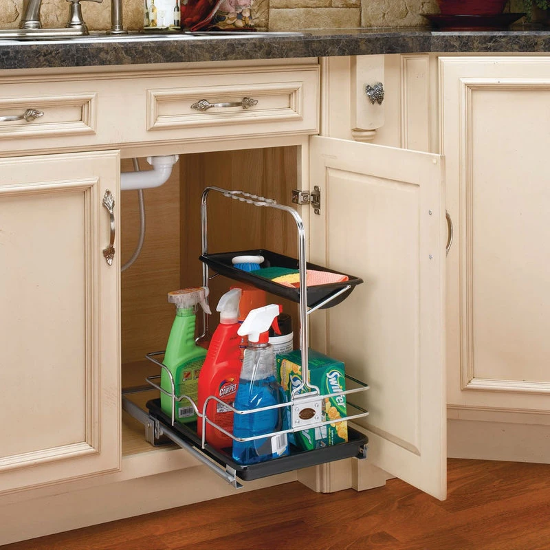 544 Series Removable Under Sink Caddy with Carrying HandleCleaning just got easier with the Under Sink Caddy. Now you can store multiple cleaning items in one place and carry them with you with the removable caddy. The unique handle adjusts to accommodate plumbing fixtures and the reversible / removable top tray is ideal for paper towel or sponge storage.Wasted space is a thing of the past! Rev-A-Shelf is the world’s largest manufacturer of functional storage organizing products. Rev-A-Shelf can offer both the professional and the homeowner the finest cabinet storage solutions available.Features: