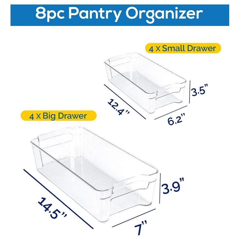 - SET OF 8 – Set of 8 pantry organizer allows for better grocery management by providing the appropriate space for proper allocation of commodities