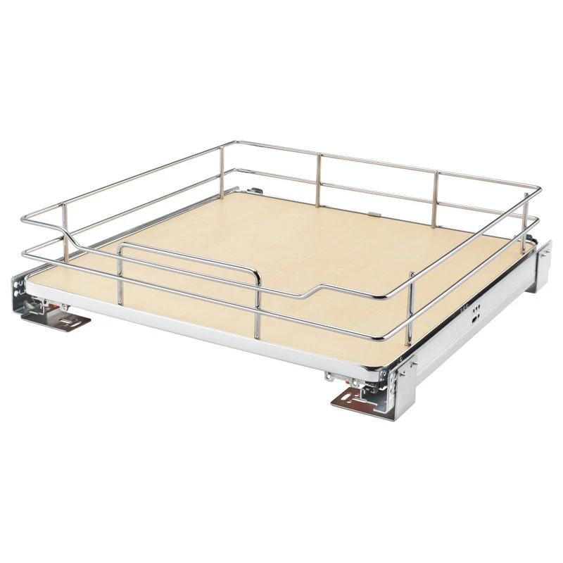 - Can be used as roll out shelves or replace your existing drawer and attach your cabinet drawer front with Included: door mount brackets