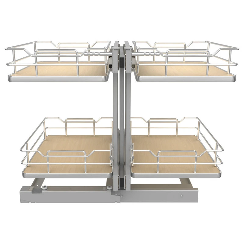 Rev-A-Shelf’s 5PSP Series maximizes space in blind corner cabinets while allowing the user full accessibility to the entire unit. Available in two-tier or three tier options these units are easy to assemble and install for either left or right-handed applications. This chrome blind corner optimizer fits most 45” blind corner cabinets and features 3 color choices, chrome accents, soft-close ball-bearing slides and heavy duty materials making it functional, reliable and stylish.