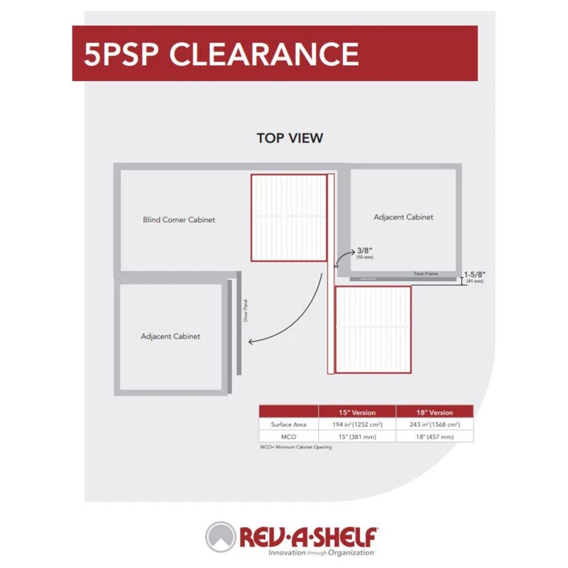- Fits most 45″ blind corner cabinets with 15″ opening