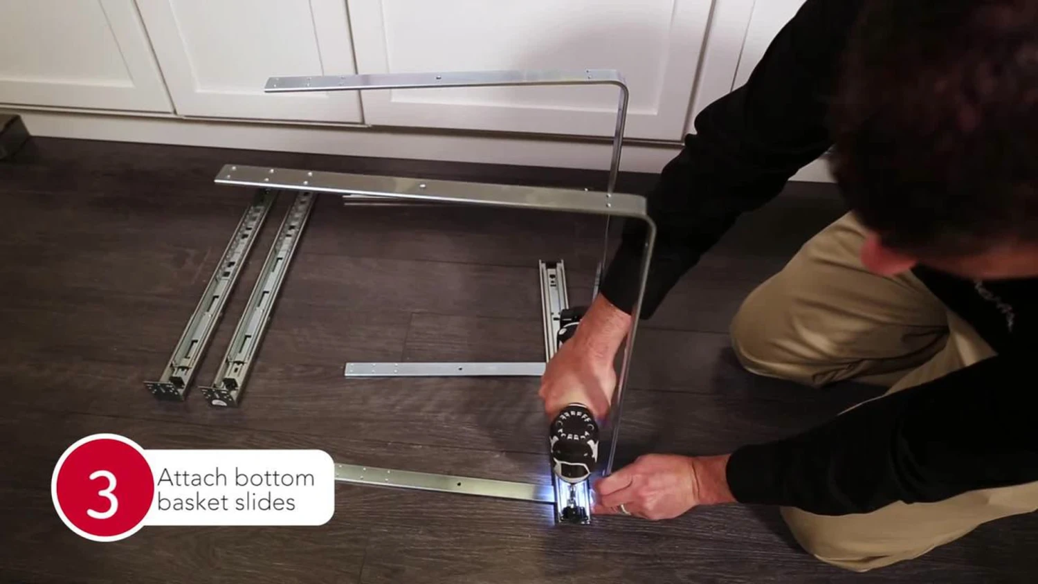 - Mounts to cabinet floor, rear and faceframe of cabinet