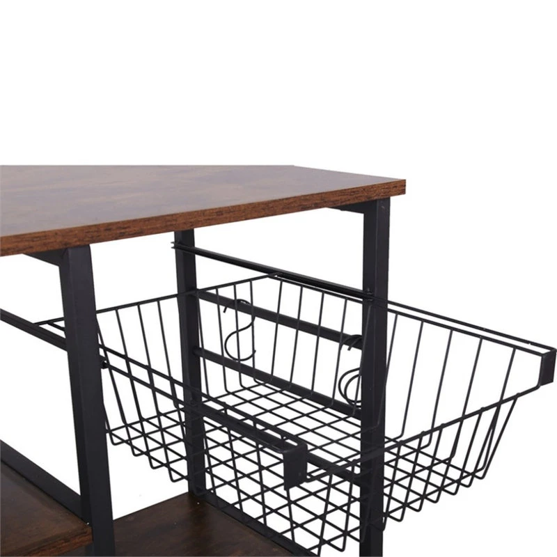 - Offers a wide wooden top and 4 open shelves