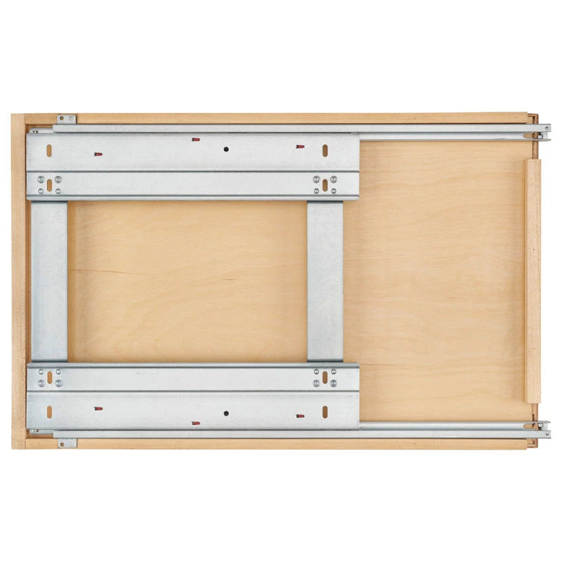 The simple but effective wood pullout drawer by Rev-A-Shelf brings hard to reach items to your fingertips. Simple installation and now features undermount Soft-close slide system. Maple wood material with dove-tail construction. Various sizes available depending on your particular cabinet size and application.